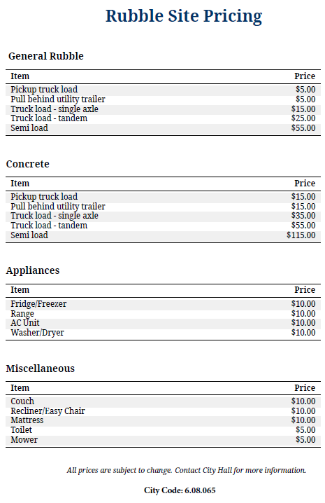 Please comply with the rules and regulations, and if you see any unauthorized dumping, please report it to City Hall.